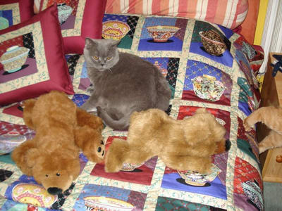 Unsere Teddybär-Sammlung ist schon sehr beachtlich, und an einem schicken "Steiff"-Bären kommt Jürgen auch selten vorbei. Wie man sieht, kommen unsere zwei Katzen