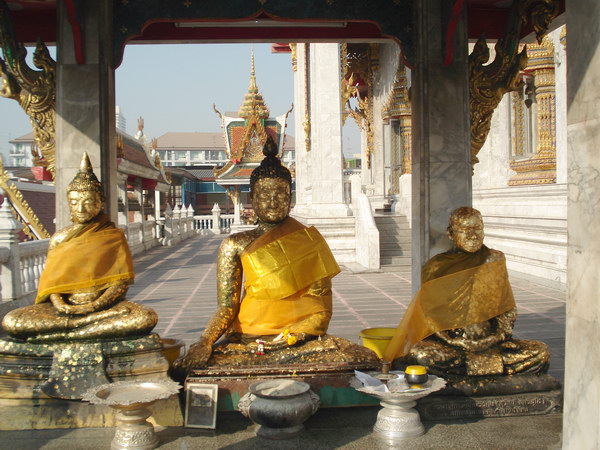 theravadische Buddhismus zieht einen förmlich in seinen Bann, und sei es nur durch seine über 30000 Tempelanlagen. Beiden Thais wird das Ehrerbieten noch groß geschrieben, schon aus dem traditionellen Wai heraus